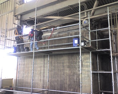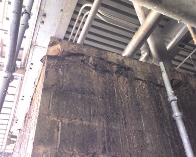 This application was carried out in accordance with Belzona Know-How System Leaflet TCC-9 and WPA-4. The area was grit blasted to remove stock and prepare the concrete. Deeper areas were filled with Belzona® 4141 and Belzona® 4111 was used over the entire outer surface to ensure containment.