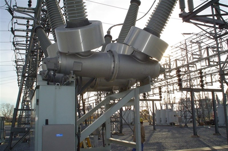 Aluminum gas breaker at substation outside natural gas powerplant