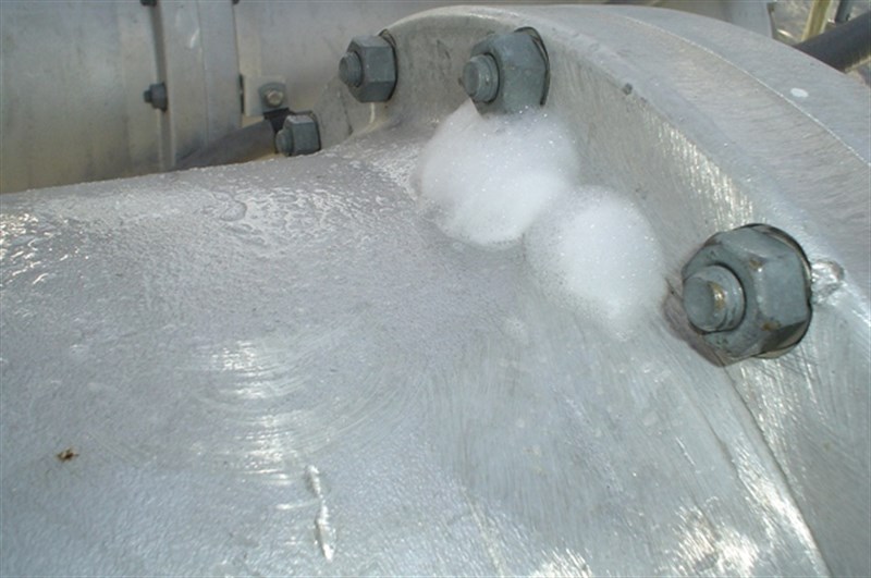 - Soapy water sprayed to detect location of leak