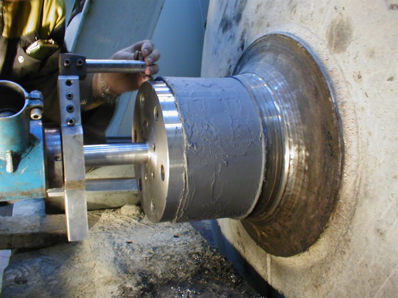 Application was carried out in accordance with Belzona Know-How System Leaflet MPT-1. Hand portable lathe was used to machine the pivot pins.