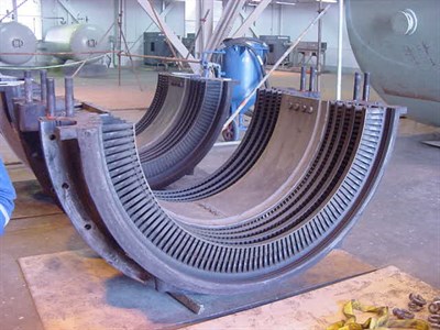 Problem: Erosion-corrosion on seating area of the upper and lower halves of the stationary blade holder. This had been caused by many years exposure to saturated steam.