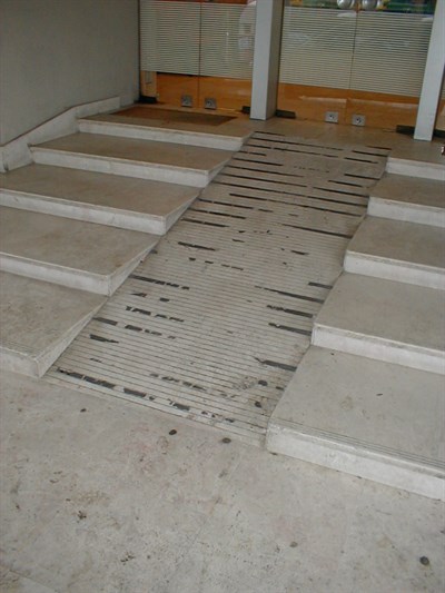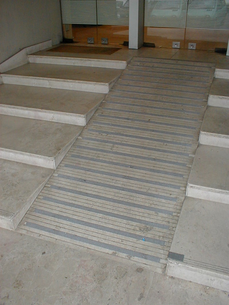 Problem: The ramp was a potential slip hazard and adhesive tapes had been unsuccessfully used to create a non-slip surface. A more positive, long term solution was required.