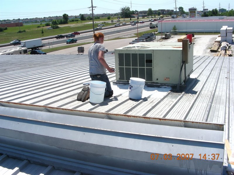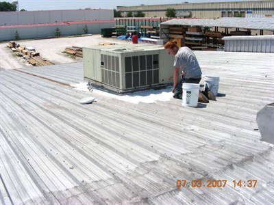 Previous success of the Belzona® 3111 and reluctant admission of mistakenly applying aluminized paint over the Belzona® 3111 coating lead to re-installation of the Belzona. Reroofing was the alternative to repairing a small portion of the 25,000 sq ft roof.