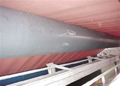 Problem: The fiberglass roll coating had worn to such an extent that the fibrous reinforcement was protruding from the surface of the coating, allowing water to ingress into the coating.