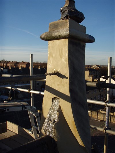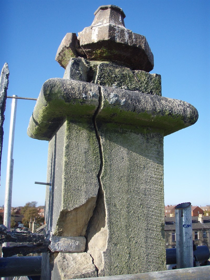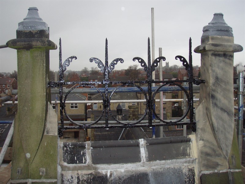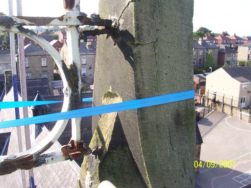 Problem: Cracking and spalling of 2 stone towers and corrosion of connecting wrought iron metalwork created a Health & Safety risk.