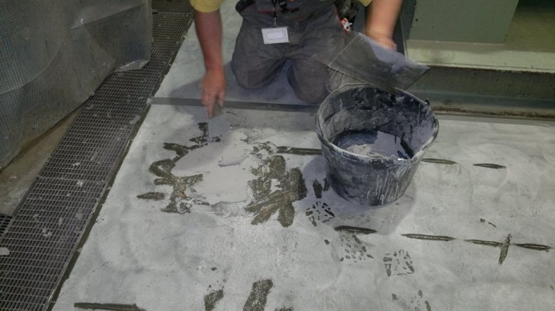 The application was carried out in accordance with Belzona System Leaflet FPA-8. After removing rubber sheets and cleaning the concrete, Belzona 4111 was used to level the concrete before applying the Belzona 4411 non-slip system.