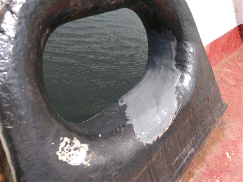 The only option here would have been to totally remove the entire hawse and replace them. This would have been extremely lengthy and would have required using a torch to remove, and a welder to reattach the new hawse. This problem was noticed with less than 2 weeks before they needed to leave the dock. By using Belzona, there was no impact on the foot traffic on board from hot work areas, there was no impact on the other operation on board, and only about 1/3 of a 2 kg unit of Belzona 1311 was used. They were able to paint over it the following day and the repair is completely no longer visible.