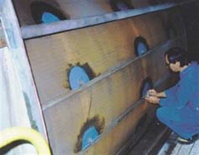 Problem: Leaks developed at the welds joining the vacuum lines to the face of the drum. The inside diameter of the drum was so deteriorated that there was some flexing at the drum face.