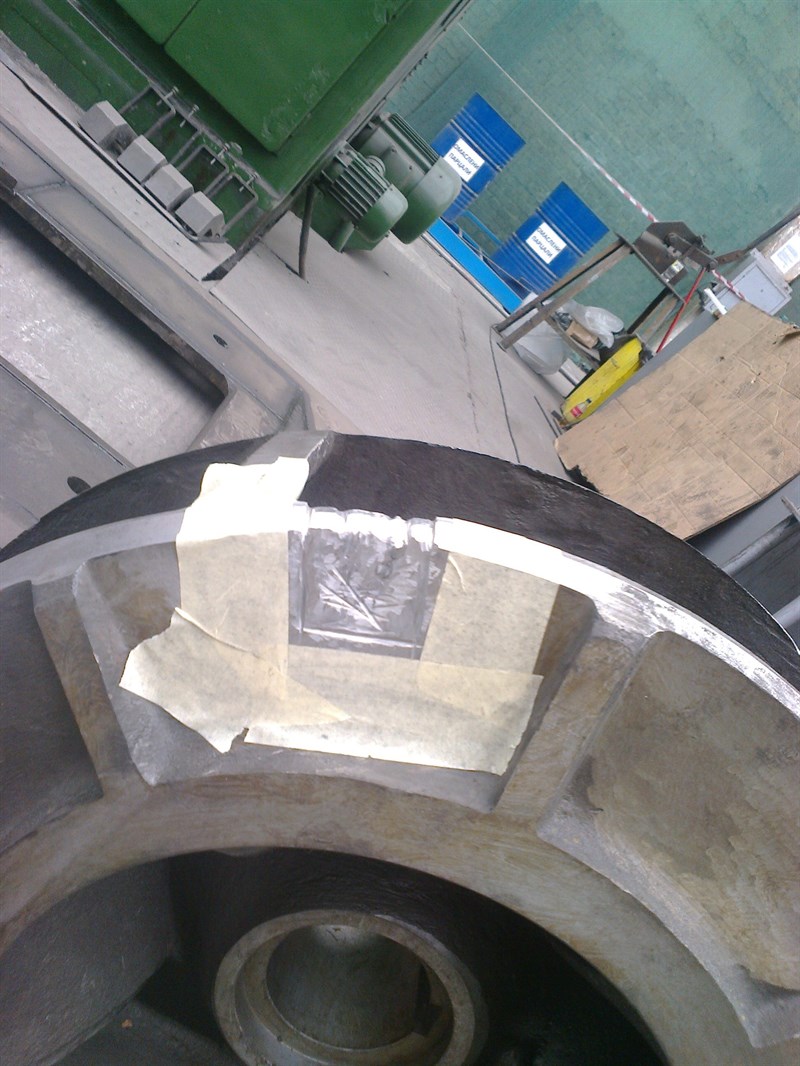 Problem: Set of cracks on one side of the newly cast impeller. The end-user had refused to accept the impeller without elimination of the cracked area. After mutual agreement between the customer and end-user, they agreed that a Belzona solution could be used.