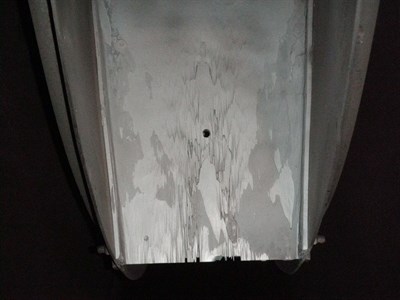- Worn out AR plate; Belzona 1311 applied several years prior is still evident. Note missing bolt.