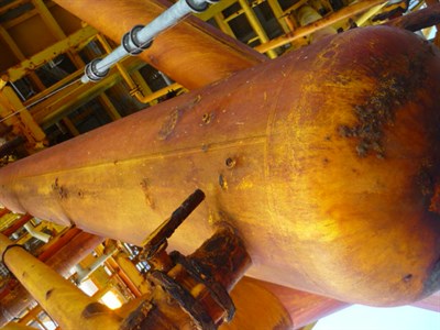 Problem: All spilled fluids on the offshore platform drain to this lowest point. The sump was a last defense and served as a gravity separator in case any oil is spilled on the platform deck. If there were oil in the bottom of this sump, it would spill into the Gulf of Mexico. Fortunately, there was no oil in the sump as it had been skimmed off prior to blasting operations.