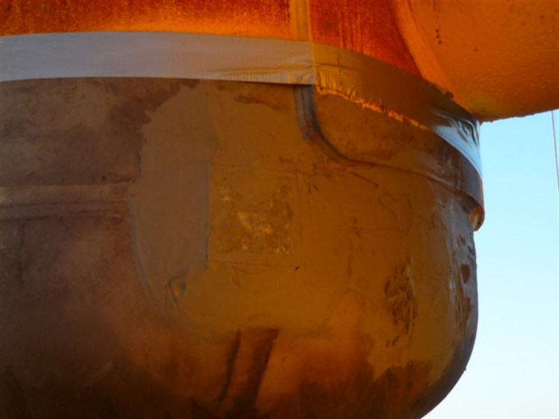 3. Defective area plugged with wood and Belzona 9611 to reduce leak.