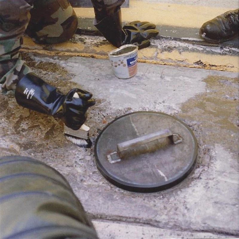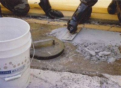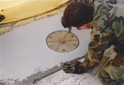 A lid was made as a former so the light cover can be removed for servicing after Belzona 4111 was applied. The concrete was roughened and Belzona 4111 was troweled down to form a "ramp" around the runway light. After full cure a snowplow was used to drive over the ramp dropping the plow at 50 MPH. There was no damage to the ramp.