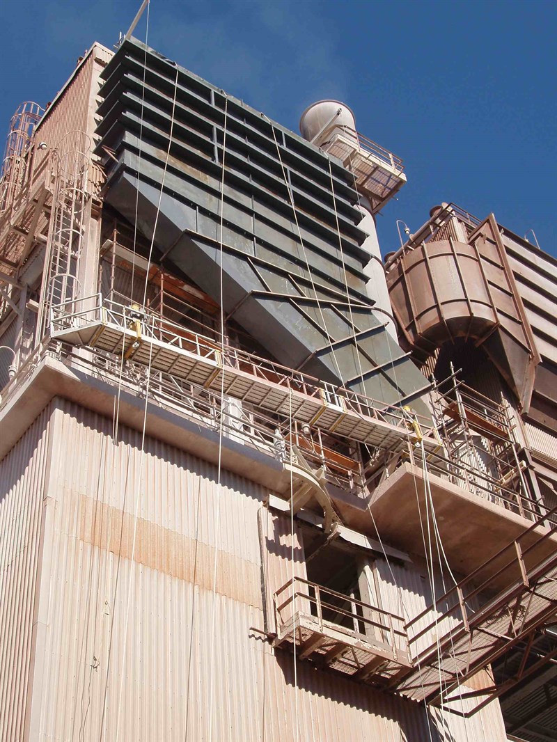 The steel ductwork had become corroded from salt water spray and NAOH mist. Vibrations from operations caused sections to become disbonded from the framework.