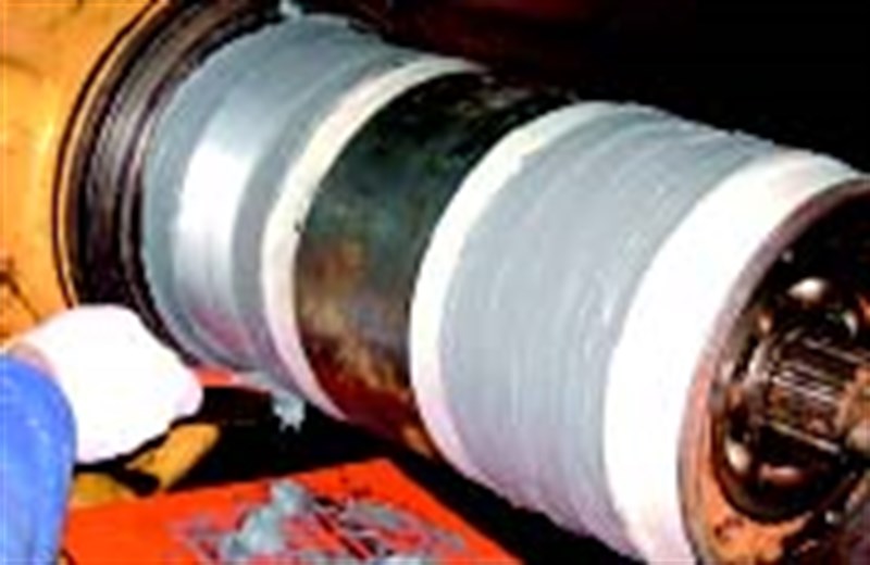 The power unit The damaged shaft Application of the Belzona® 1111 underway The completed repair