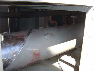The customer began to cycle salt water through the chiller barrel in an effort to lower the operating temperature of the unit and in turn, accelerate the production rate of the food process. Result was accelerated corrosion damage. A replacement for this barrel would not be available for six months, and a rupture would cause millions in lost production. Belzona saved the day, and was able to protect the barrel from this catastrophic failure.
