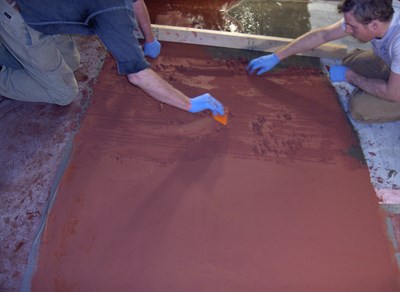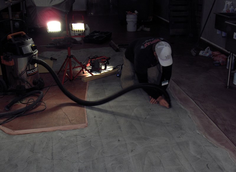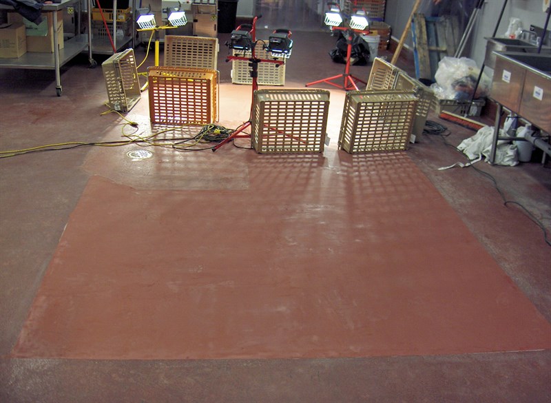 Heat lamps were used to accelerate cure to ensure area ready for use following day.