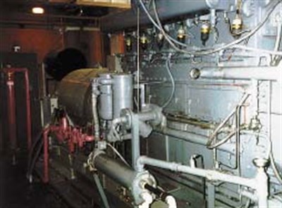 - View of the engines used at wastwater plant. Three engines are located in powerhouse.