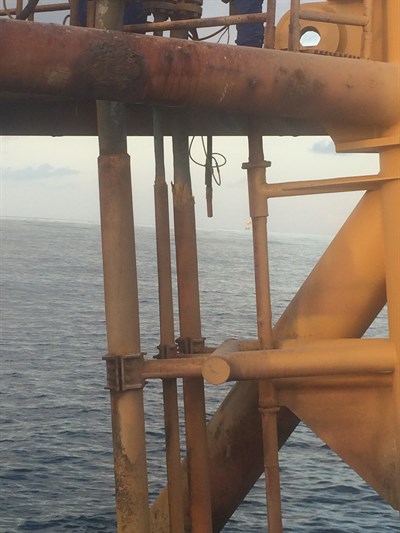 Problem: Poor adhesion of the neoprene sleeve on 3 risers allowed corrosion to develop between the sleeve and pipe wall, causing further deterioration of the riser. The asset owner required a suitable solution without downtime or loss of production.