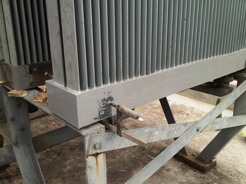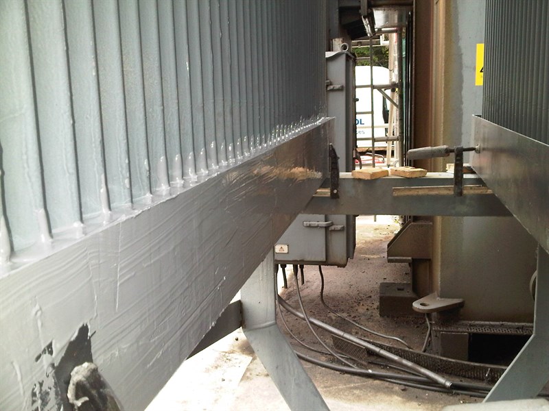 Problem: Over the years, corrosion had caused loss of wall thickness at the base of the transformer fins with leaks beginning to occur.