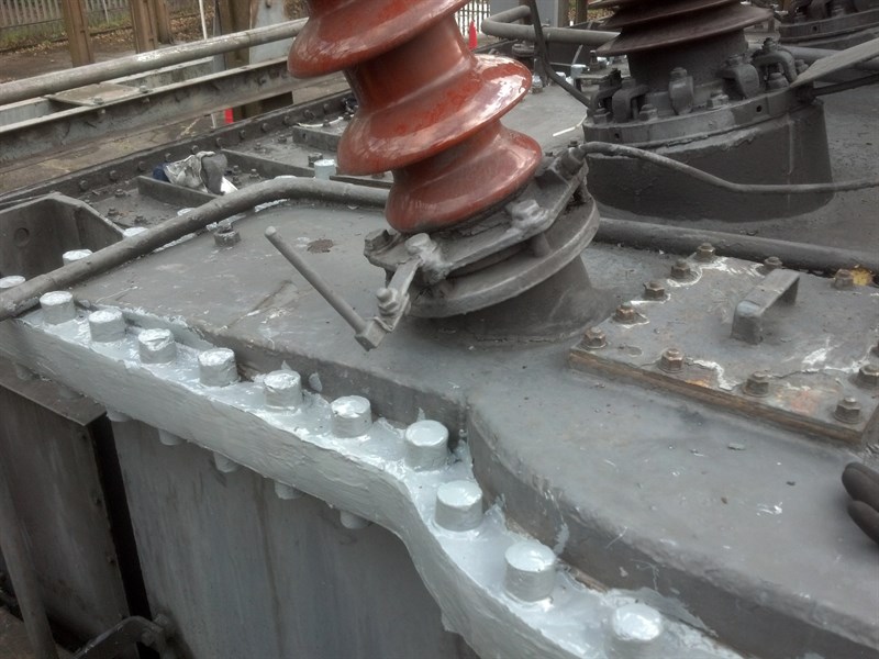 Problem: The main flange was discharging high volumes of oil through the failed gasket system, together with loss through the top and bottom bolt heads. Continual tightening of the bolts was no longer proving effective on this aged transformer. The Client sought a comprehensive solution to seal the main flange and bolt heads.