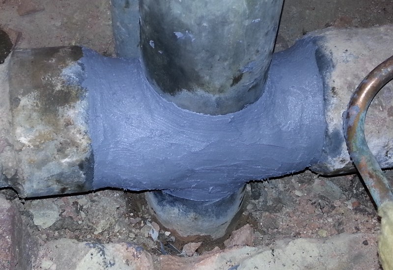 A 4” cast iron sewage pipe behind toilets on the 3rd floor started leaking at the point where 4 x pipes connect, causing water damage to the toilet blocks on both floor levels below.