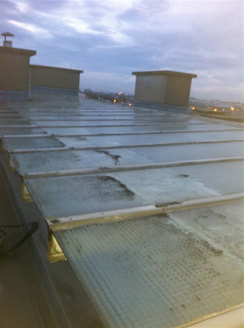 Problem: Water was penetrating the joints between aluminum frame and glass due to failure of the original sealant.