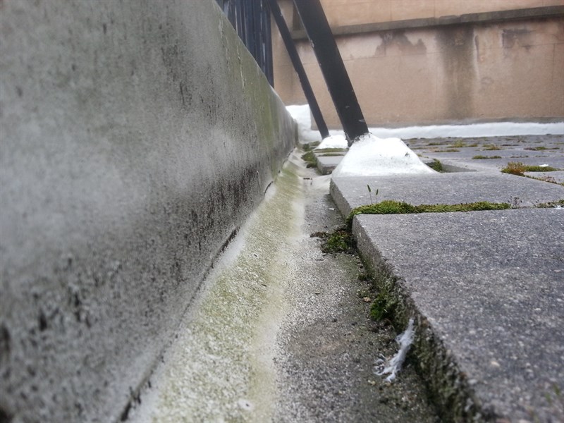 Problem: The asphalt roof was leaking underneath the concrete slabs, causing water damage to the rooms below. To repair the roof the College was planning to remove the concrete slabs, replace the asphalt roof and then reinstall the concrete slabs.