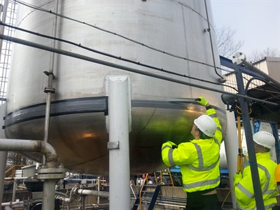 Problem: The aggressive nature of additives held within the tank had caused leaks to appear along the welded seam around the base. Due to the high cost and high demand of the additives a lengthy shutdown for repairs was not an option.