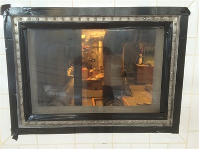 The application was carried out in accordance with a modified berBelzona Know-How System Leaflet FPA-6. The stainless steel surround was prepares using a grinder to achieve a clean rough profile on the metal surface. After masking off the perimeter, a ⅛ thick rubber tape was used to create a suitable clearance on the inside of the window-sufficient to clear the screw heads.