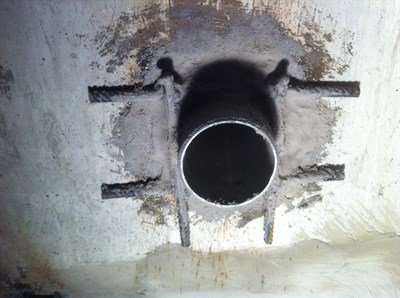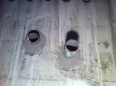 Problem: New pipes drilled into water reservoir needed to be anchored and sealed to the tank wall.