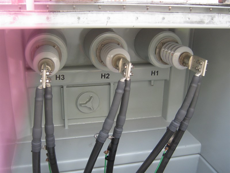 Problem: It was noted that a small oil leak was present at the bushing. No oil should leak from this bushing. The heavy electrical cables were not supported adequately.