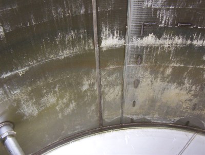 Application carried out in accordance with Belzona System Leaflet TCC-1. The tank was drained and rinsed. A stainless steel tank cleaner was used to clean the surface.