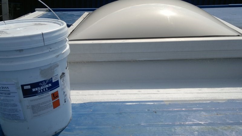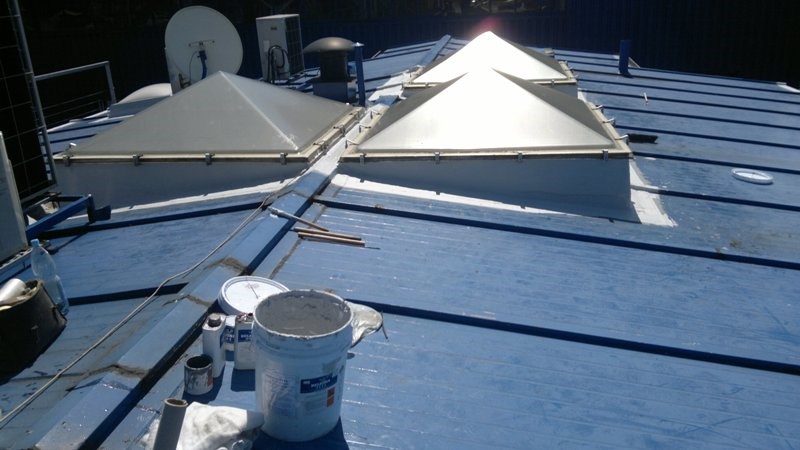 1. Skylight prepared for repair 2. Skylight after repair with Belzona 3111 3. Other sealed skylights 4. The roof in 2016 still good with Belzona 3111