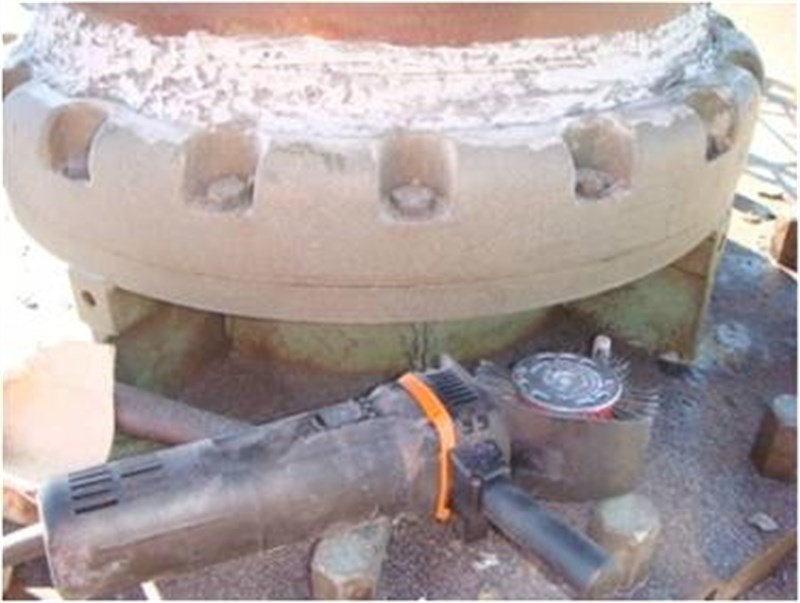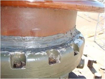 Application was carried out in accordance with Belzona Know-How System leaflet VPF-11a. An MBX Bristle Blaster was used to prepare the surface before application of Belzona® 1161 to seal the leak area.