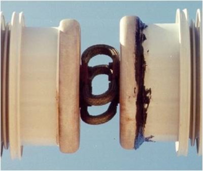 Application was carried out in accordance with a modified Belzona Know-How System Leaflet ENC-10. Following surface preparation to profile the metal and remove the glaze from the porcelain Belzona® 2311 was used to create an elastomeric seal.