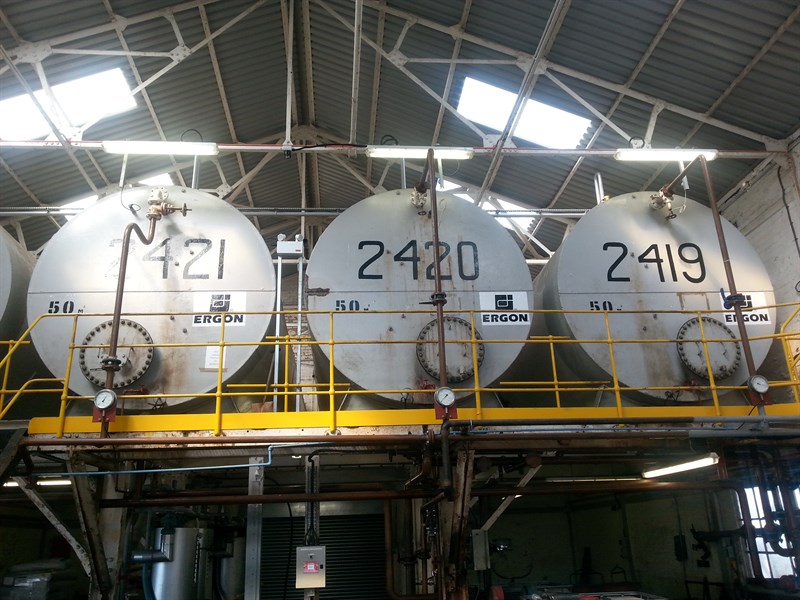 Transformer oil storage tanks. The client recycles millions of liters of transformer oil every year. As part of the process, they extract the moisture from recycled oil by shutting the tanks off from the atmosphere and connecting the tanks to silica gel tanks to remove the moisture.