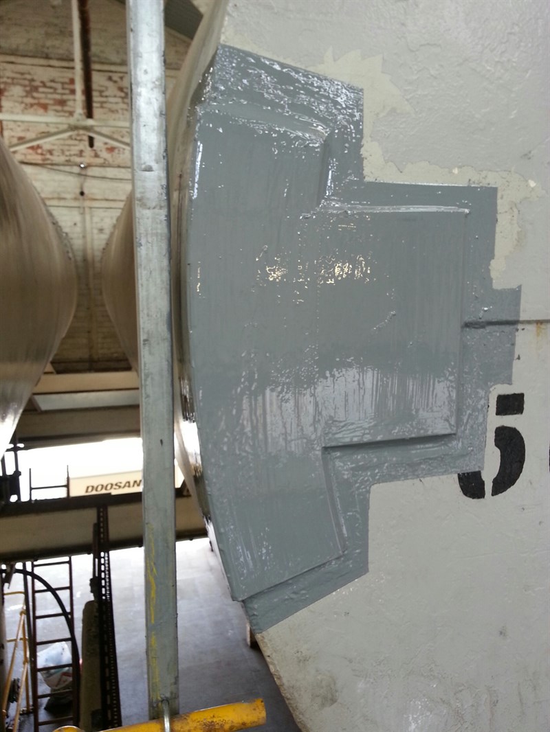 The application was carried out in accordance with Belzona Know-How System Leaflet TCC-1. After the initial surface preparation, Belzona 1212 was used to bond pre-manufactured plates onto the damaged areas of the tanks. Once cured, Belzona 5831 was applied to the plated area to provide long term environmental protection. This application was completed on 6 areas where leaks were identified.