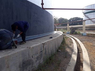 Substrate: Mild Steel ( Tank Shell ) and concreteCustomer Location: Refinery, Mumbai, India