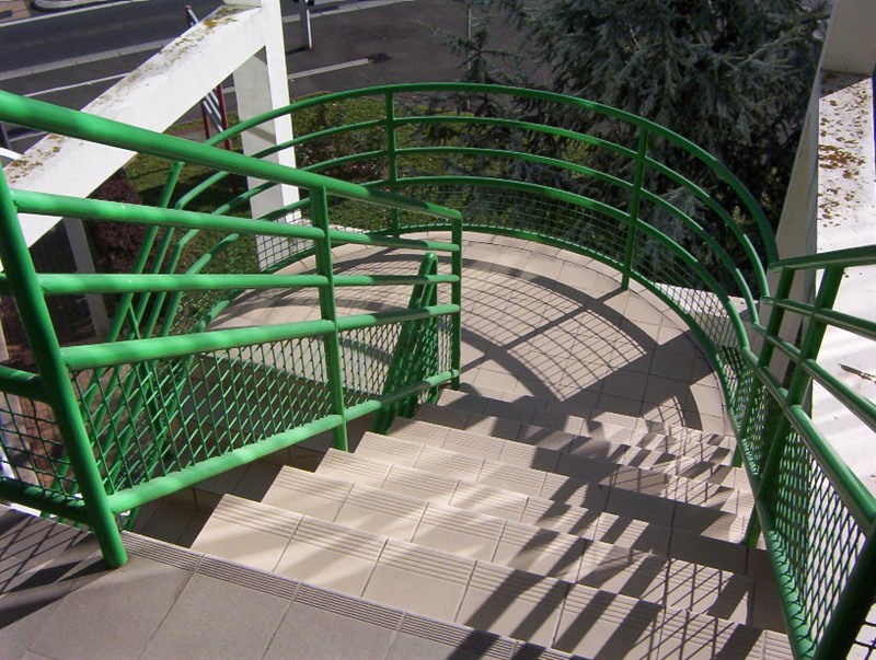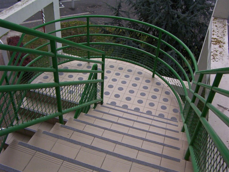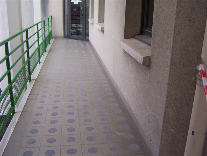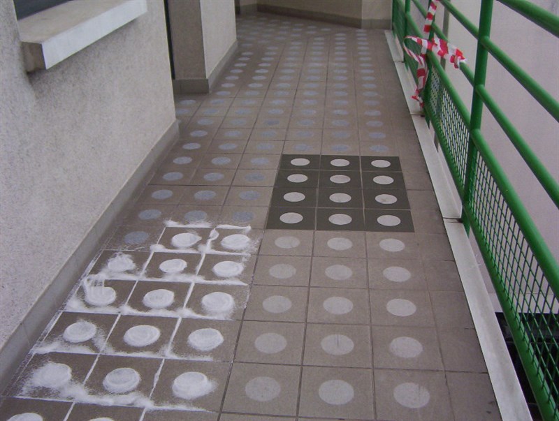 The application was carried out in accordance with Belzona Know-How System Leaflet FPA-8. Belzona® 4411 was applied on stair treads and floor, using stencils to create non slip patterns on each tile.