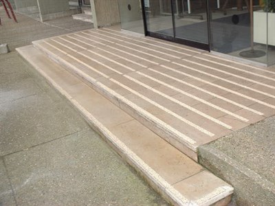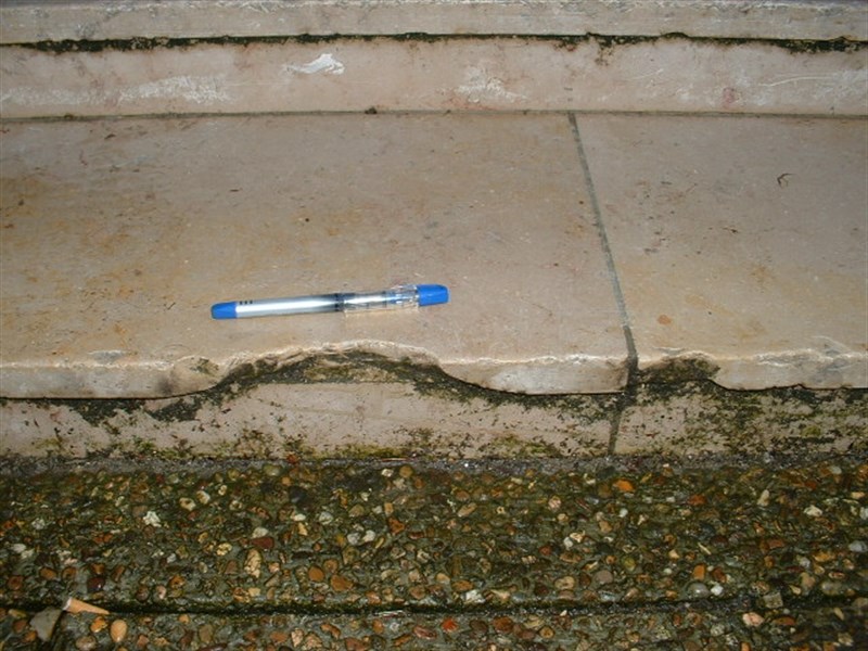Problem: The steps were damaged through impact and were extremely slippery when wet.