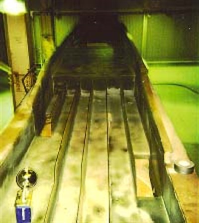 - Another view of the 30 foot long, 8-foot-wide bark shaker coated with two coats of Belzona® 1341.
