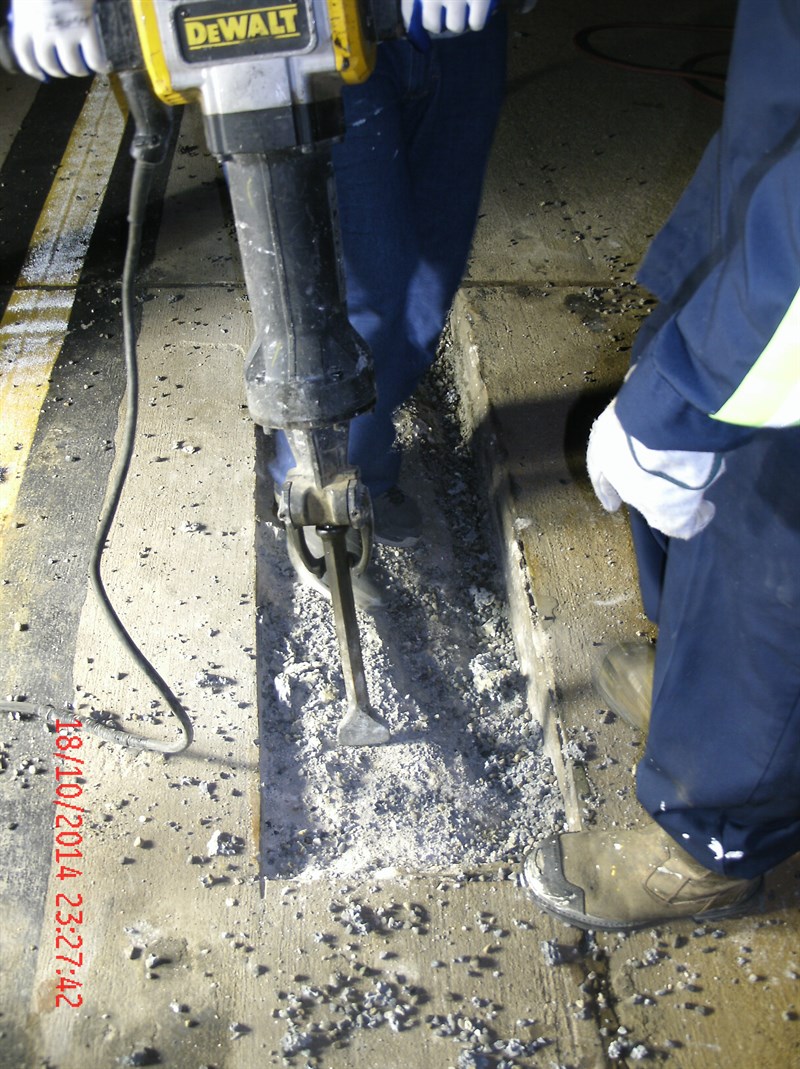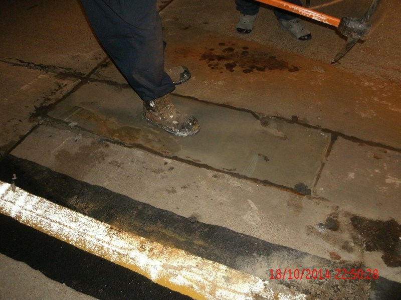 The application was carried out in accordance with Belzona Know-How System Leaflet FPA. Old and loose material was removed. Then, a mixture of gravel and Belzona 4111 was used to bulk up the patch. A batch of pure Belzona 4111 was used to finish the job.