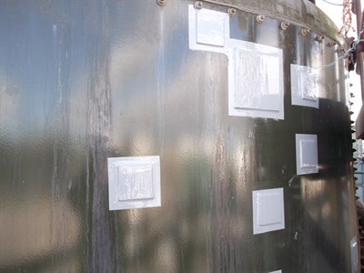 Problem: The sludge buffer tank was suffering from through wall corrosion at the vapour interface level. The tank could not be taken off line for an extended time which traditional repair methods would require due to demand. Any repairs would have to be carried out without hot works or the use mechanical equipment due to the risk of sparks.