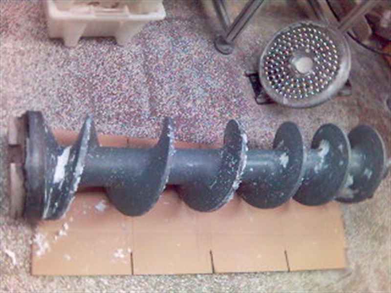 Silumin worms (screw conveyors) for soap production facility. These are used for extruding soap and referred to as a "plodder".