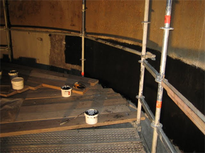 Problem: Some of the internal walls and steel cones needed repairing. In addition, a static dissipative coating was required to protect against static build up within the silo.