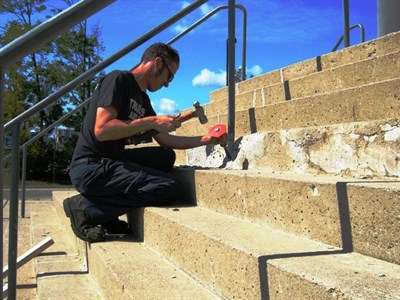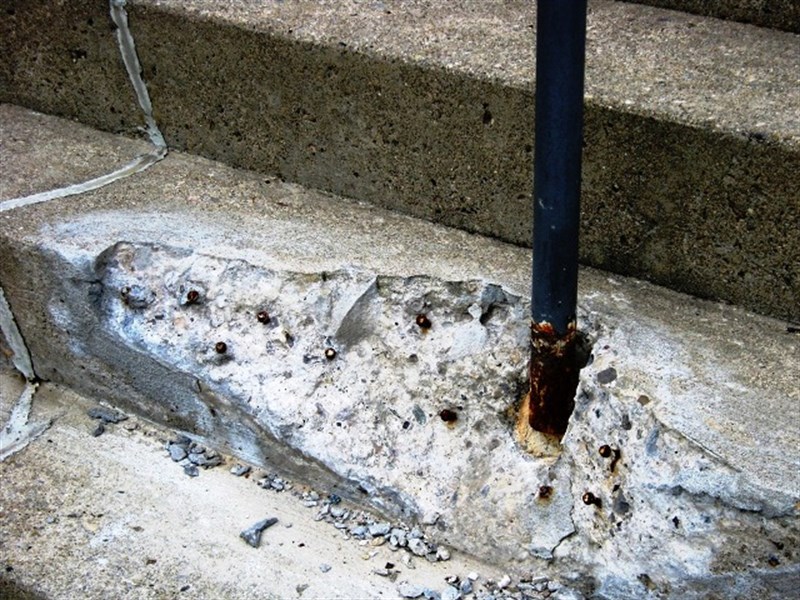 Problem: Spalled concrete around hand rail post.