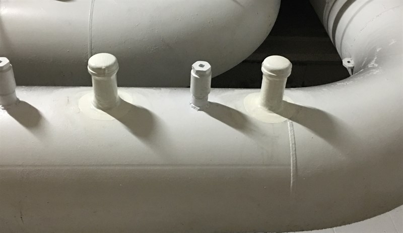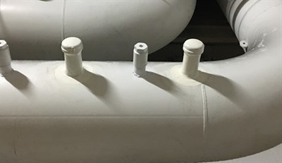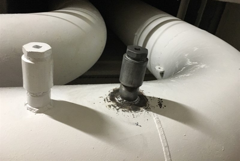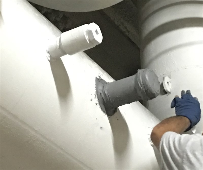Problem: Cooling tower line drains were leaking and causing damage to the paint of vehicles parked below. Aesthetics were important to the client. Not only did they need the leak stopped, they also needed a solution that would not be an eye-sore to their tenants.