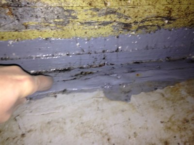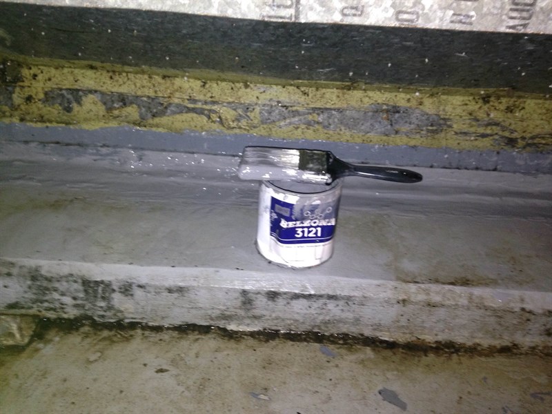 - Bad portion of old coating removed, prepped with wire brush and wiped with acetone