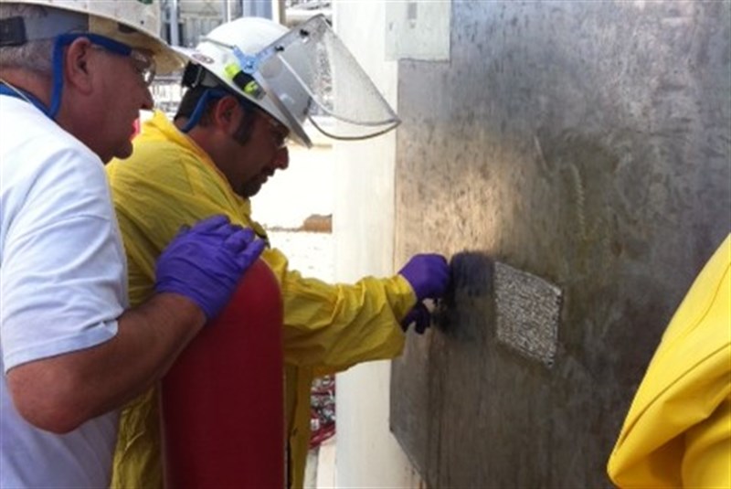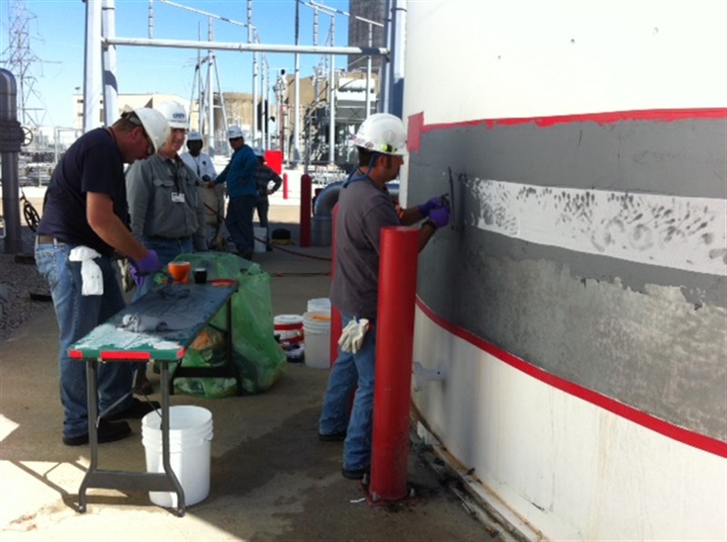 Problem: Pinholes developed in the tank that is used for emergency backup water for refueling. After testing it was discovered that a large area of the 3/16" steel sidewall was only .050 thick.
